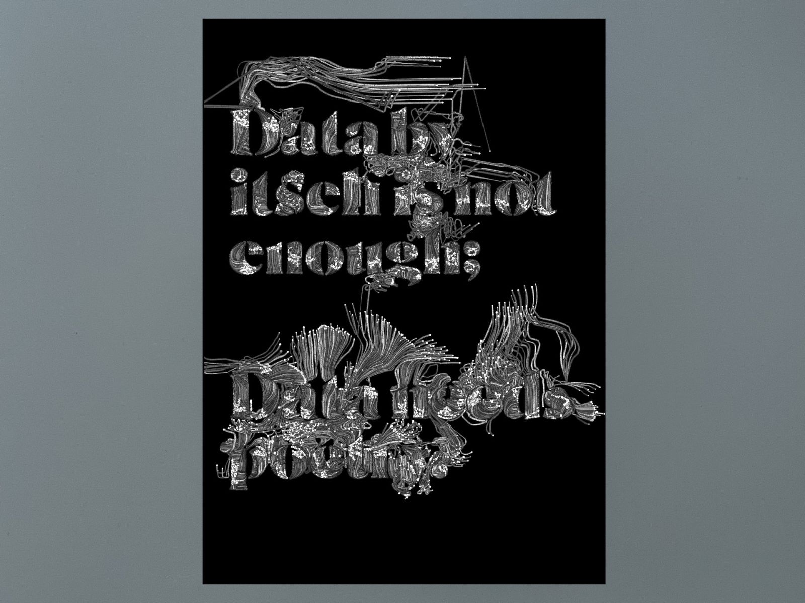 This has been a personal guiding mantra since I first started working with data. This open edition is created using bespoke software, as flocks of particles coalesce around the typography to gradually form the message.