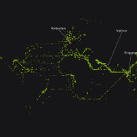 Commissioned by Brand Culture for Platts, an animated visualisation showing the journey of over 3000 ships created from five months of historical shipping data.